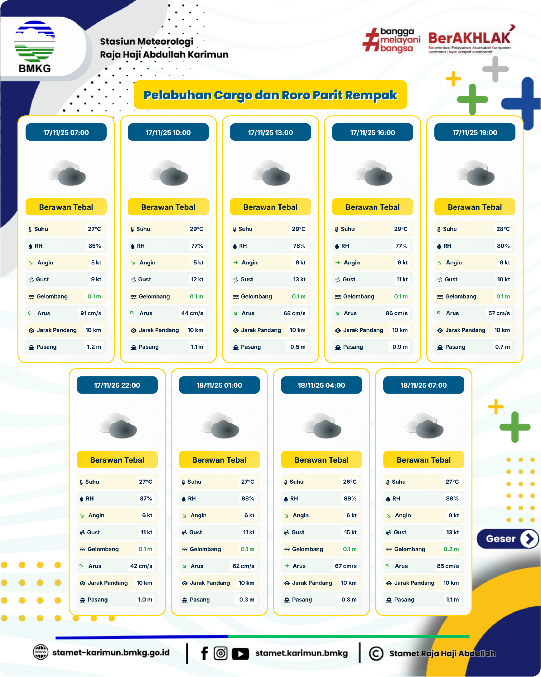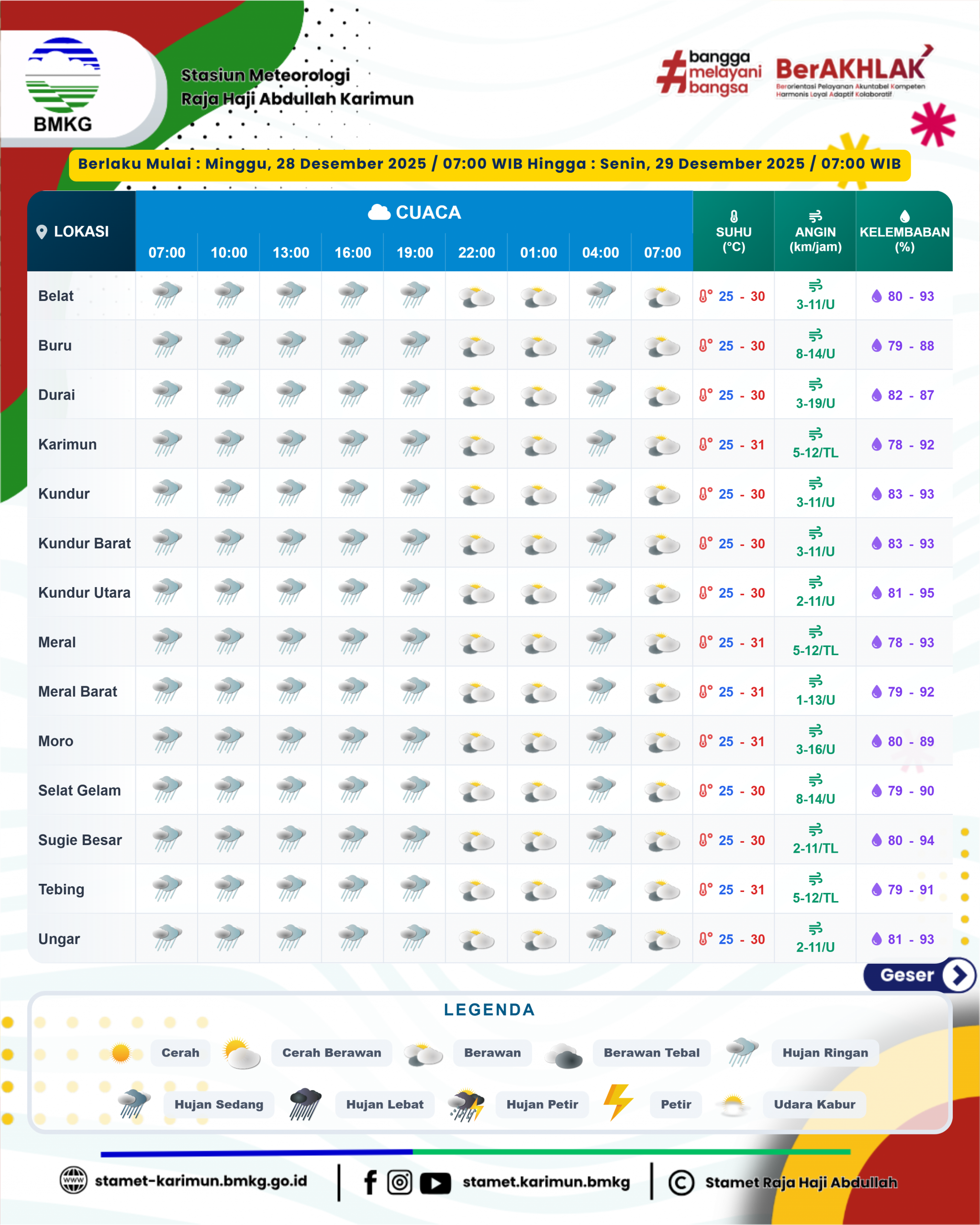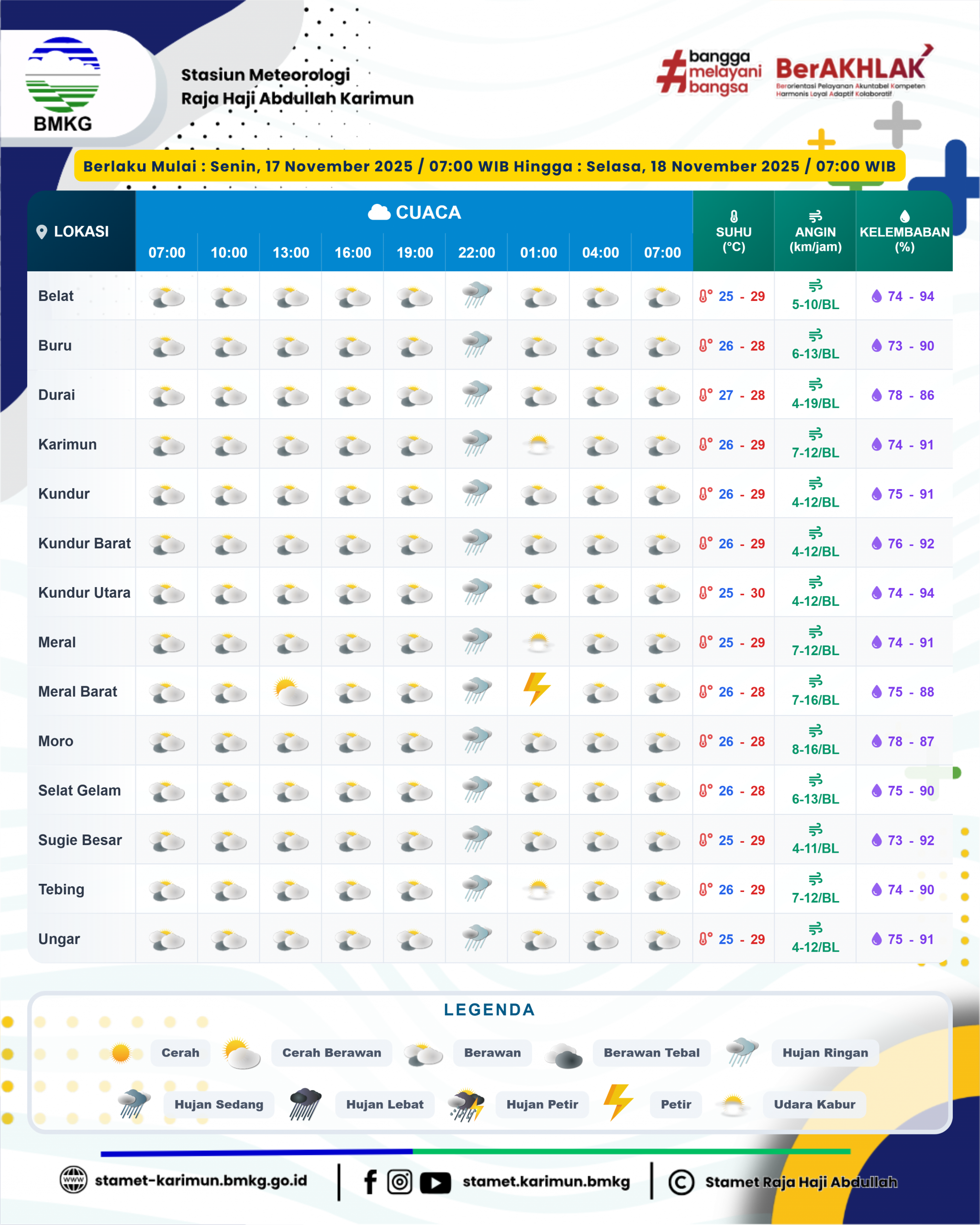 Informasi cuaca realtime untuk setiap kecamatan di Kabupaten Karimun